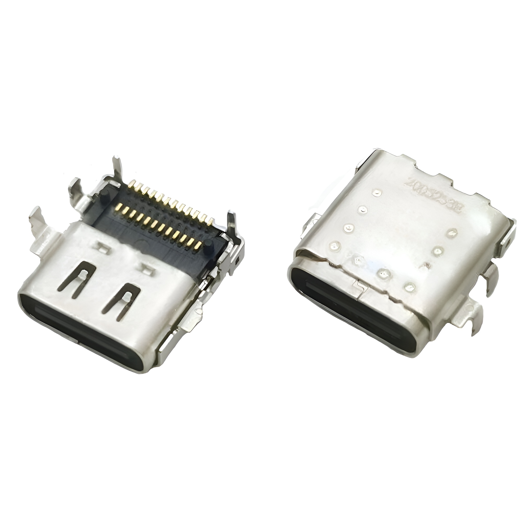 TYPE C 單排24P母座 沉板式免焊型連接器 帶雙耳螺絲孔